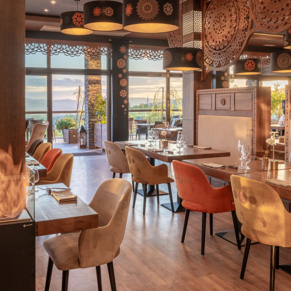 estauracja z duszą – i widokiem, który zapiera dech. Zasiądziesz w eleganckim wnętrzu z panoramicznym widokiem na Beskidy, gdzie góralskie akcenty spotykają się z nowoczesnym komfortem. Kuchnia otwarta pozwala podejrzeć kulinarne dzieła tworzone na żywo – bo dla nas gotowanie to nie tylko smak, to również spektakl.